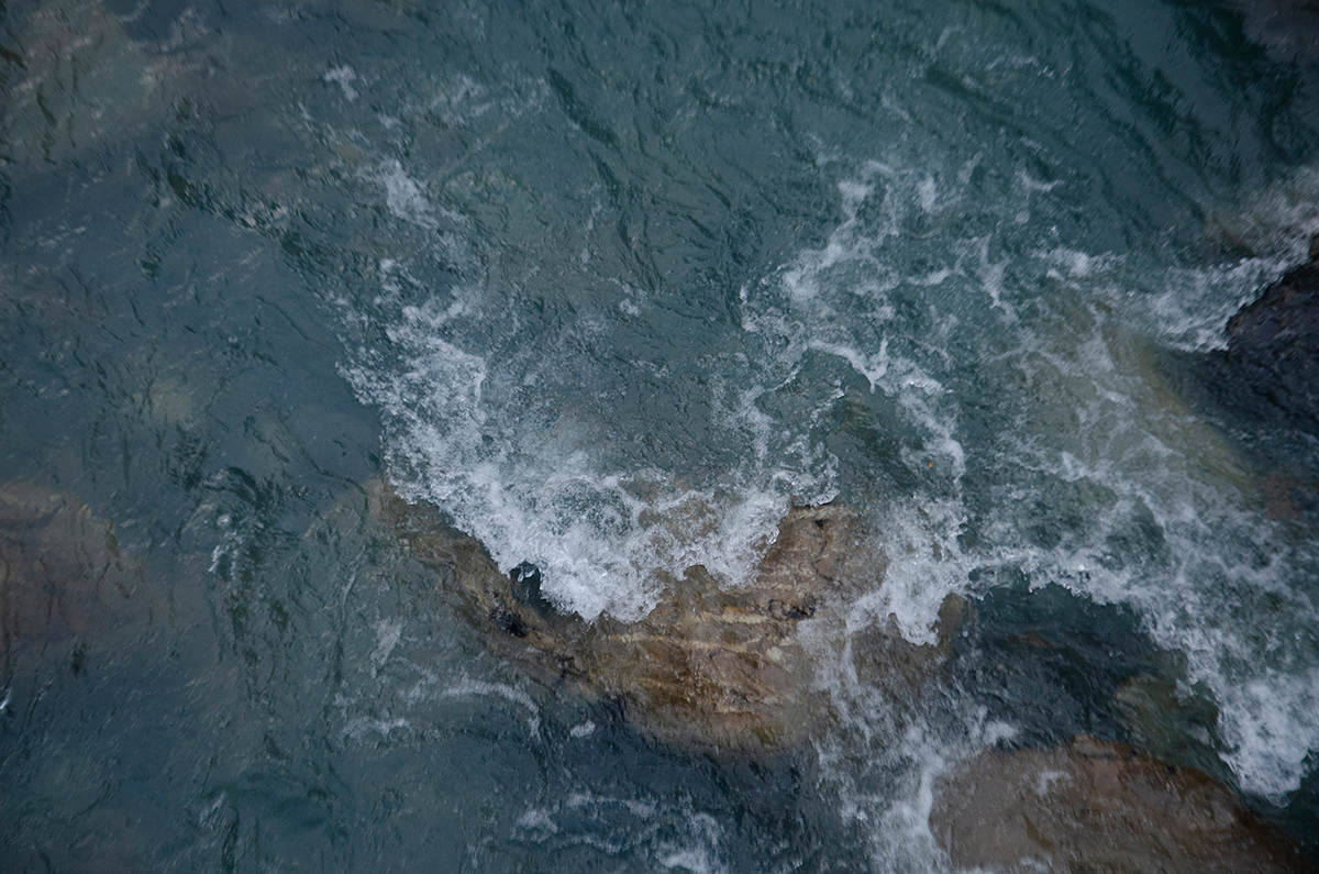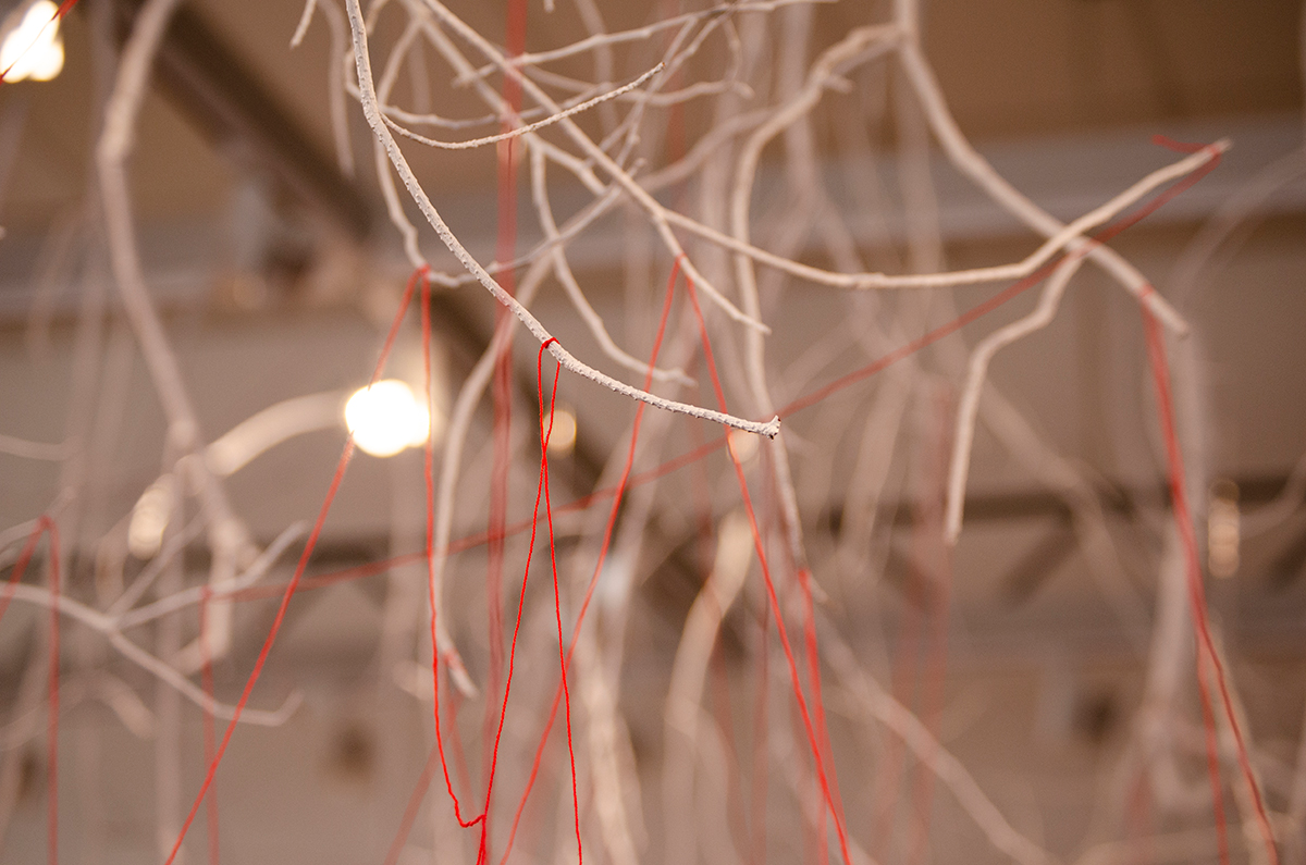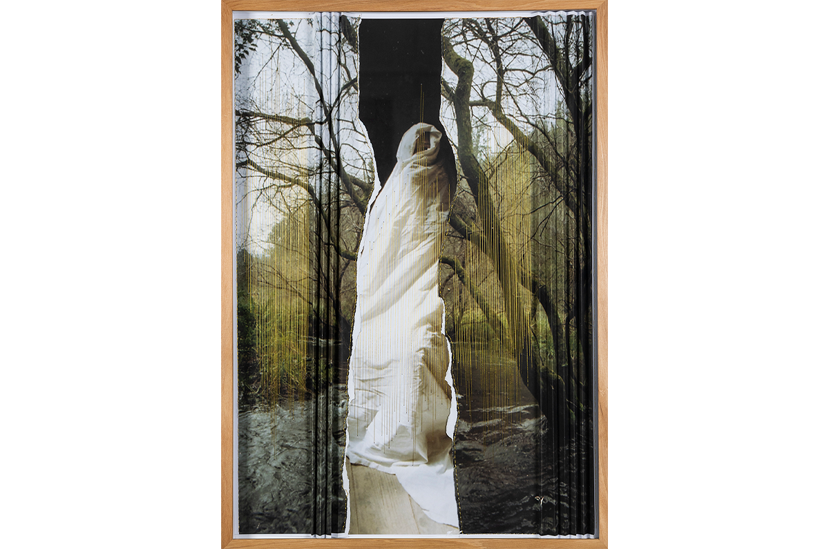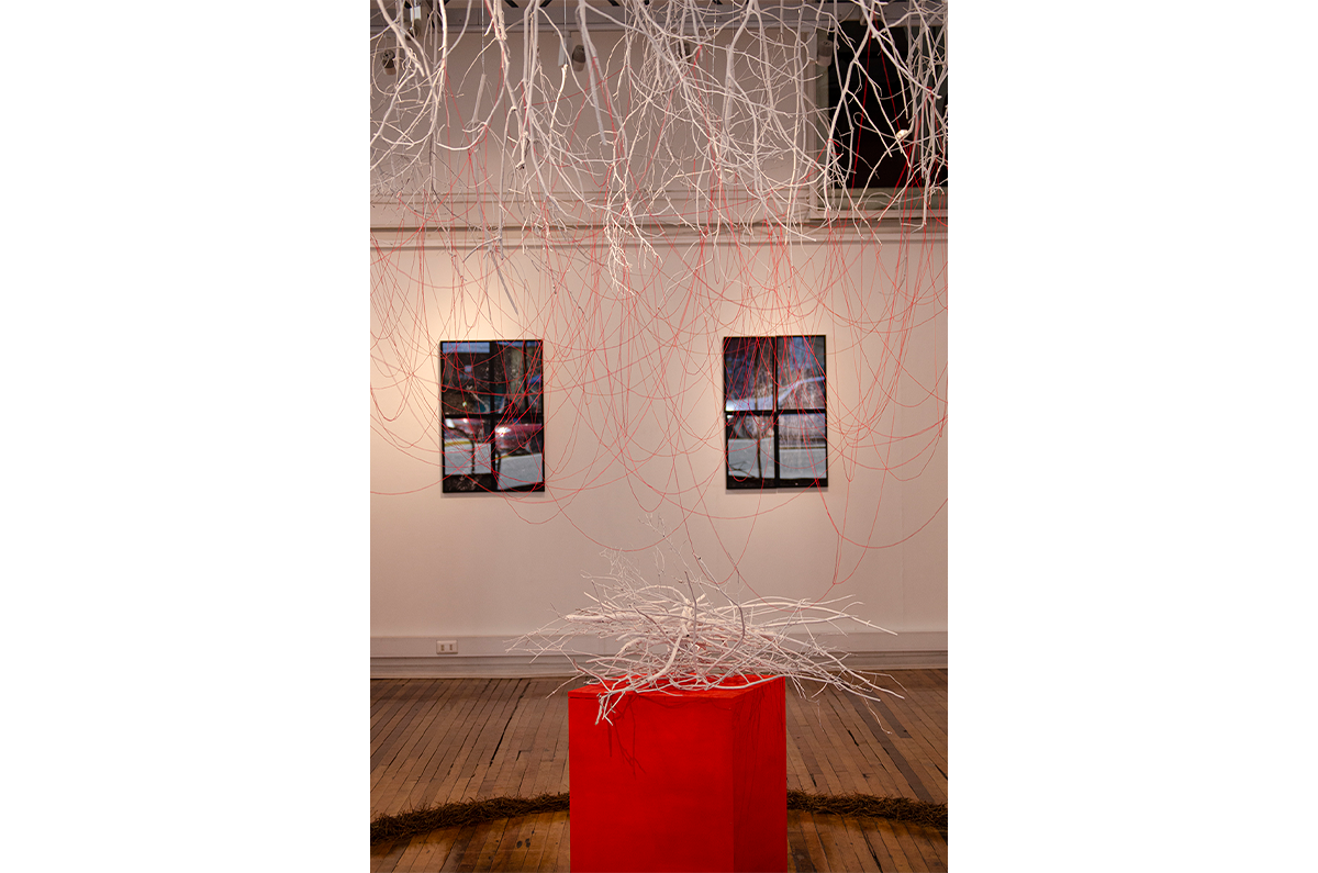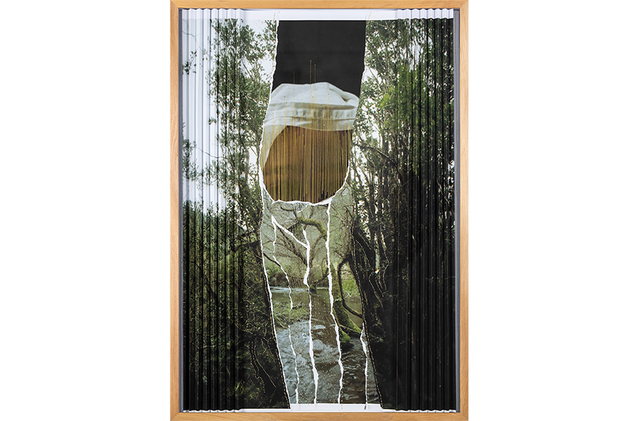 A través de las imágenes fotográficas y una puesta en escena natural se invita al público a ahondar en el ciclo del agua del río y su función nutritiva hacia los árboles, develando las raíces y las ramas, contrapartes y sostén de una relación vital. A su vez, la patente subjetividad de la artista considera el cuerpo fragmentado de la mujer como reflejo de la separación y pérdida vinculante de los ciclos naturales con la vida humana. Al mismo tiempo, el hilo dorado se adhiere a las imágenes a manera de elementos metafóricos del trayecto del agua sobre el cuerpo y el recorrido del río, eterno movimiento que sostiene nuestra supervivencia.